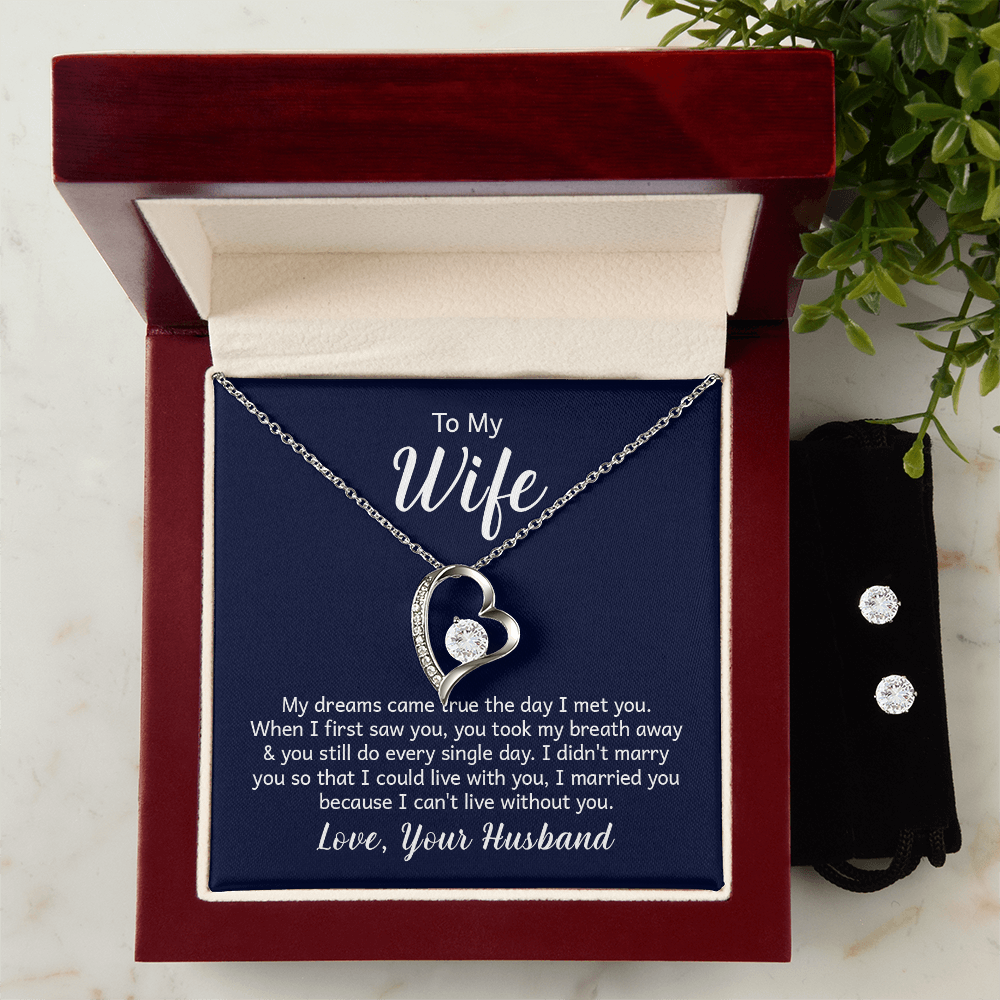 To My Wife Gift | Forever Love Heart Necklace & Earring Set with Message Card | Husband to Wife Anniversary, Birthday, Christmas Jewelry