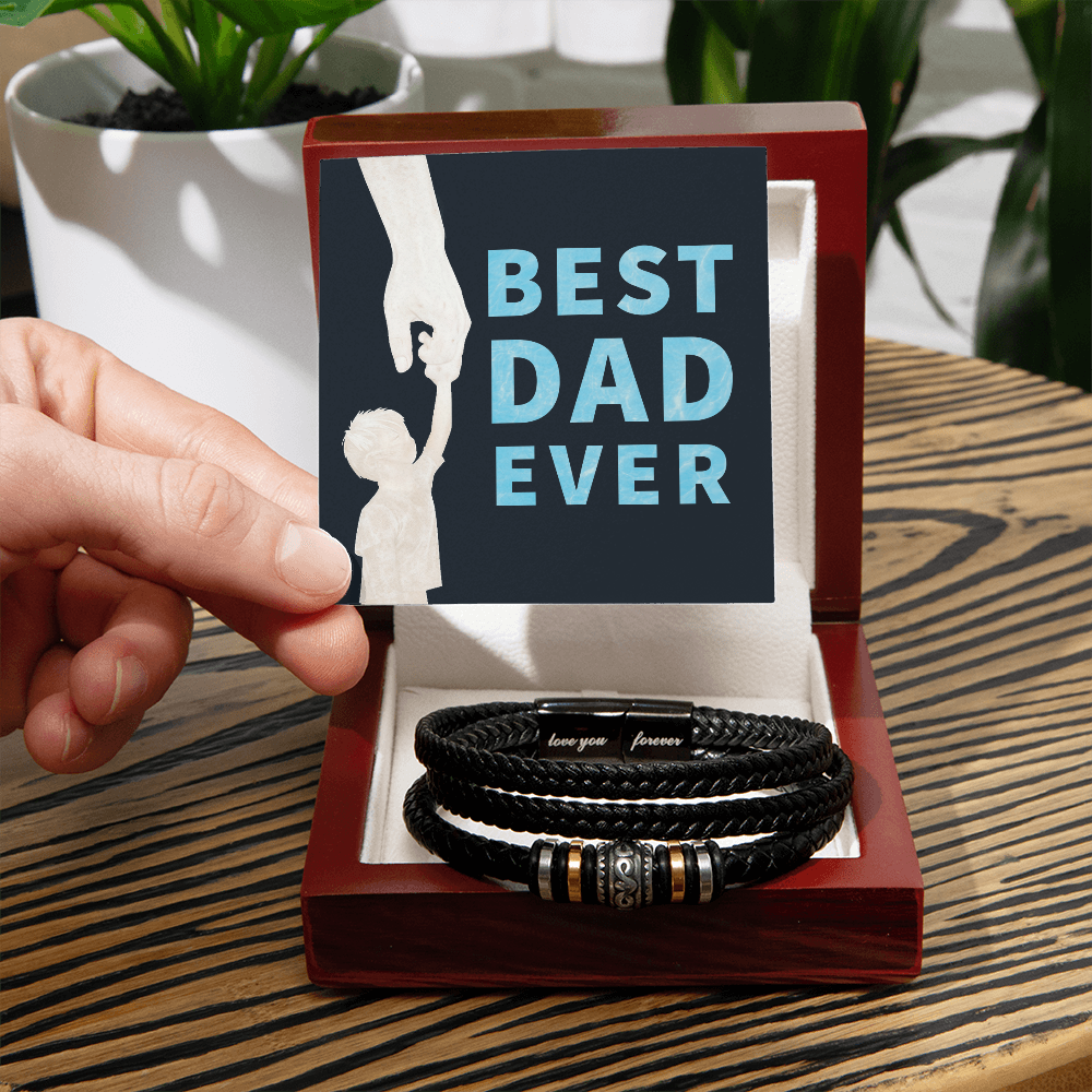 Gift for Dad from Son - "Best Dad Ever' Men's "Love You Forever" Leather Bracelet