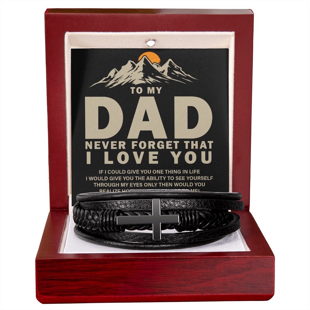 "Gift for Dad, Never forget that i Love you." - Men's Cross Leather Bracelet